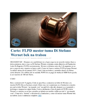 Lotto Pa Deporte (FLPD) recientemente. Wernet a informa corte dia 2 di augustus cu no