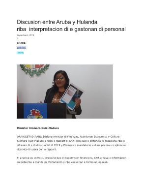 ORANJESTAD(AAN): Dialuna minister di Finanzas, Asuntonan Economico y Cultura