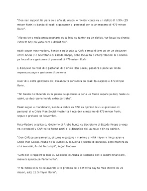“Den nan rapport tin para cu e aña aki Aruba lo mester conta cu un deficit di 0.5% (25