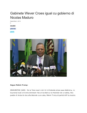 pueblo di Aruba tin dos aña bibando cune caba, Melvin Tromp di partidi AVP ta mustra.