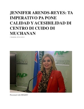 JENNIFER ARENDS-REYES: TA IMPERATIVO PA PONE CALIDAD Y ACESIBILIDAD DI CENTRO DI CUIDO DI MUCHANAN 4 September, 2019, 5:00 pm Processed with MOLDIV