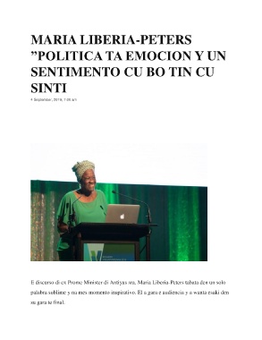 E discurso di ex Prome Minister di Antiyas sra. Maria Liberia-Peters tabata den un solo
