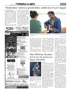 This image released by Universal Pictures shows Lily James,, left, and Himesh Patel in a scene from