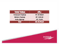 Total Value Afl,- Newspaper Clippings Afl. 38.309,60 Website Clippings Afl. 5.692,50 Radio Clippings Afl. 745,00 Total Afl. 44.747,10