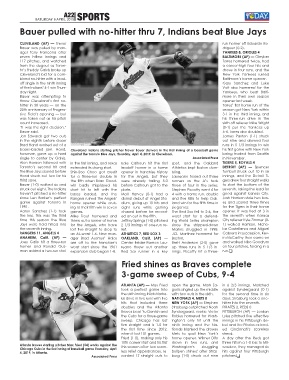 Bauer pulled with no-hitter thru 7, Indians beat Blue Jays