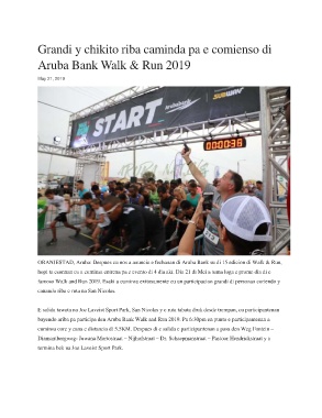 bayendo ariba pa participa den Aruba Bank Walk and Run 2019. Pa 6:30pm en punto e participantenan a