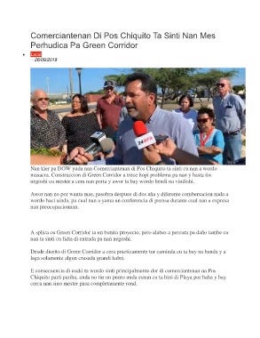 masacra. Construccion di Green Corridor a trece hopi problema pa nan y hasta tin