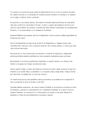 riba loke mester ta e bienestar di Aruba. Ta den e cuadro aki Gobierno di Reino den