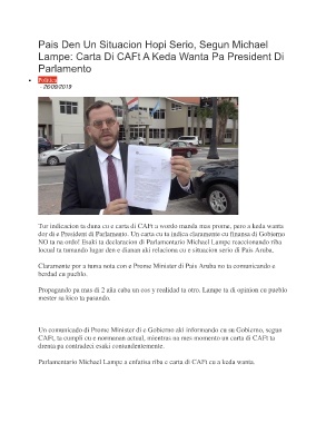 Lampe: Carta Di CAFt A Keda Wanta Pa President Di