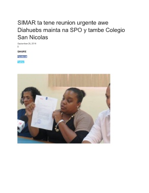 SIMAR ta tene reunion urgente awe Diahuebs mainta na SPO y tambe Colegio San Nicolas September 26, 2019 0 SHARE Facebook Twitter