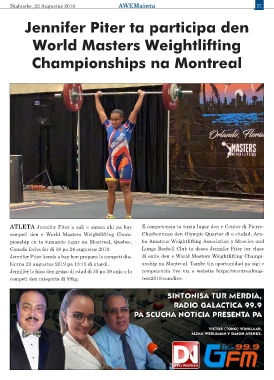 Jennifer Piter kende a bay bon prepara lo competi dia- di exito den e World Masters Weightlifting Champi-