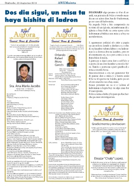 Anna ribadia di condoleer of despedida. mas famia y amistadnan di nos difunto stima. Misa Immaculada Concepcion Santa Cruz.