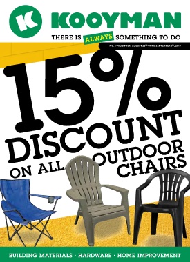 15% NO. 8 VALID FROM AUGUST 22 UNTIL SEPTEMBER 8 , 2019 ND TH discount outdoor on all chairs building materials • hardware • home improvement