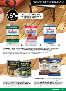 ➀ THOMPSON’S® WOOD WATERPROOFER 1.2 gl, oil-enriched protection against water & sun damage, UV and mildew resistant,
