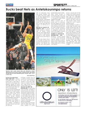 NEW YORK (AP) — Giannis points and 10 rebounds for