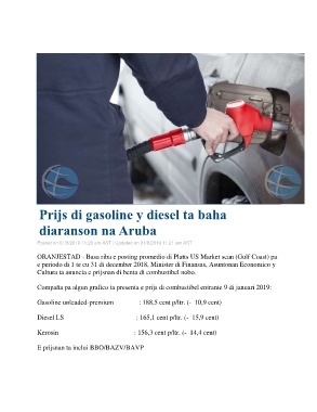 Compaña pa algun grafico ta presenta e prijs di combustibel entrante 9 di januari 2019:
