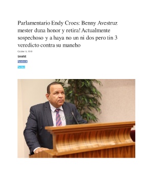 Parlamentario Endy Croes: Benny Avestruz mester duna honor y retira! Actualmente sospechoso y a haya no un ni dos pero tin 3 veredicto contra su maneho October 6, 2019 SHARE Facebook Twitter