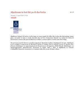 Dos persona a wordo deteni y ta wordo sospecha di labamento di placa. Investigacion ta sigui. Afpakteam