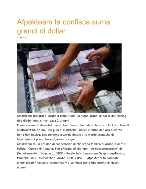 Afpakteam Integral di Aruba a bolbe tuma un suma grandi di dollar den beslag