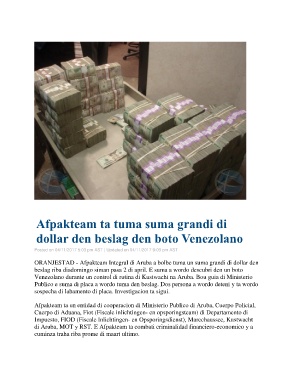 ORANJESTAD - Afpakteam Integral di Aruba a bolbe tuma un suma grandi di dollar den