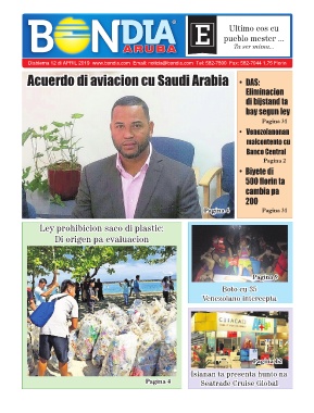 Diabierna 12 di APRIL 2019 www.bondia.com Email: noticia@bondia.com Tel: 582-7800 Fax: 582-7044 1,75 Florin