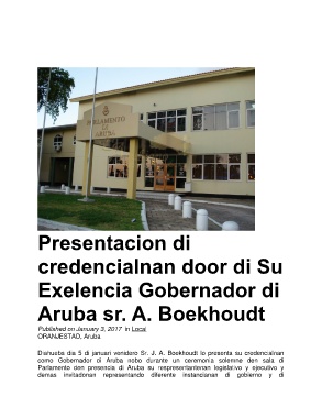 Diahuebs dia 5 di januari venidero Sr. J. A. Boekhoudt lo presenta su credencialnan
