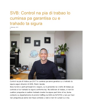Control na pia di trabou pa 2017 lo cuminsa pa asina garatisa cu e trahado ta