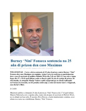 Ministerio publico a demanda 26 aña di prizon pa ‘Nini’ Fonseca dia 17 di april ultimo.