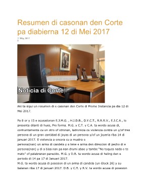 Aki ta sigui un resumen di e casonan den Corte di Prome Instancia pa dia 12 di