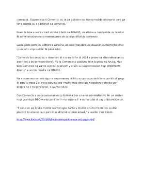 comercial. Sugerencia di Comercio no ta pa gobierno no tuma medida necesario pero pa