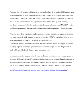 gobierno di Prome Minister Wever Croes, ta hayando mesun trato cu Hulanda y mundo ta
