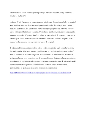 Ademas Wyatt-Ras a manda preguntanan pa loke ta trata Spoedeisende hulp na hospital.