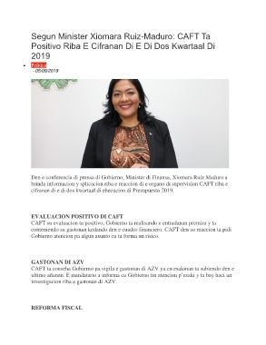Den e conferencia di prensa di Gobierno, Minister di Finansa, Xiomara Ruiz Maduro a