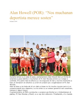 sorpresa a pasa bishita e muchanan di FC San Nicolas prome cu e wega a
