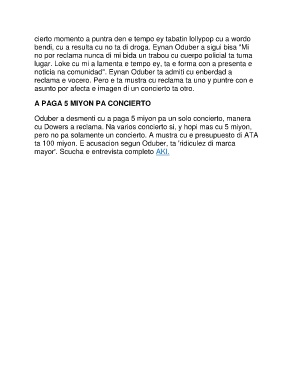 Oduber a desmenti cu a paga 5 miyon pa un solo concierto, manera