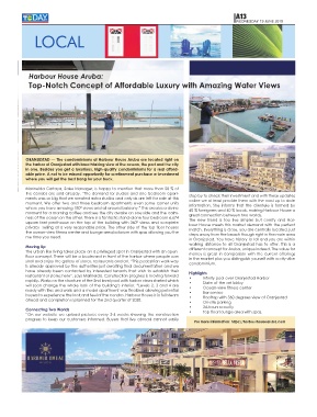 buyers to experience the look and feel of the condos. Harbour House is in full steam   •    Rooftop with 360 degrees view of Oranjestad