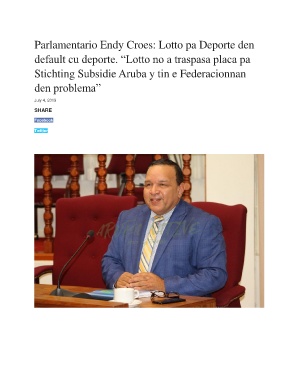 Parlamentario Endy Croes: Lotto pa Deporte den default cu deporte. “Lotto no a traspasa placa pa Stichting Subsidie Aruba y tin e Federacionnan den problema” July 4, 2019 SHARE Facebook Twitter