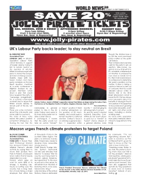 Britain should decide to Conference at the Brighton Centre in Brighton, England, Monday, Sept. 23, 2019. and prefers in his speeches