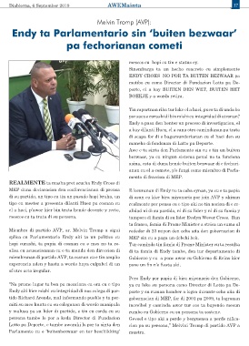 Endy ta Parlamentario sin ‘buiten bezwaar’