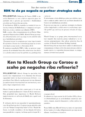 y tin un “Nelson Complexity Index” di 9.9. Heyde Re- Tanto RdK como Klesch Group ta conta cu coperacion