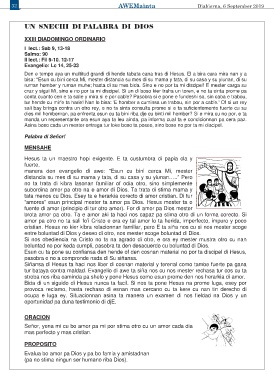 manera den evangelio di awe: "Esun cu bini cerca Mi, mester
