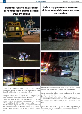 turista. Pa 20:25 dr. Texeire a constata morto di e señora tin nada particular. Riba caminda no por a mira nada di glas