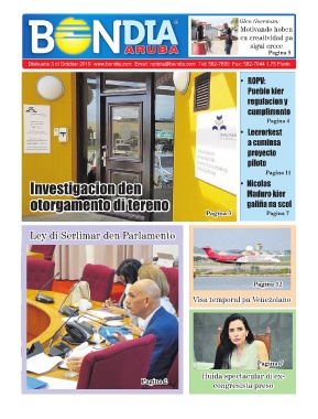 Diahuebs 3 di October 2019 www.bondia.com Email: noticia@bondia.com Tel: 582-7800 Fax: 582-7044 1,75 Florin