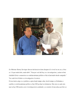 Ex Minister Benny Sevinger den un declaracion duna despues di e inval na su cas, a bisa