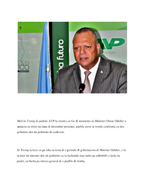 Sr Tromp ta kere cu pa loke ta resta di e periodo di gobernacion di Minister Oduber, e lo