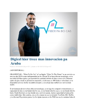 ORANJESTAD - “Fiber Pa Bo Cas” of na Ingles “Fiber To The Home” ta un servicio cu