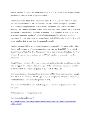 desaster finaciero cu a biba e pais na un debe di 92% di su GDP. Awe ex minister Mike Eman ta