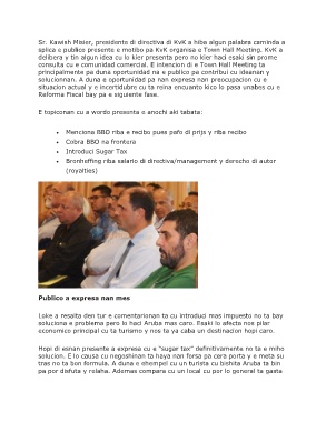 splica e publico presente e motibo pa KvK organisa e Town Hall Meeting. KvK a