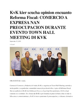 Camara di Comercio y Industria di Aruba (KvK) a organisa un Town Hall Meeting caminda a