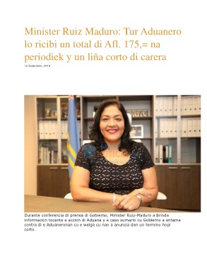 Durante conferencia di prensa di Gobierno, Minister Ruiz-Maduro a brinda